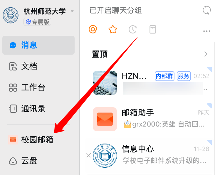 (1)电脑网页端: https://mail.hznu.edu.cn,通过智慧师大专属钉App扫码或统一身份认证登录;