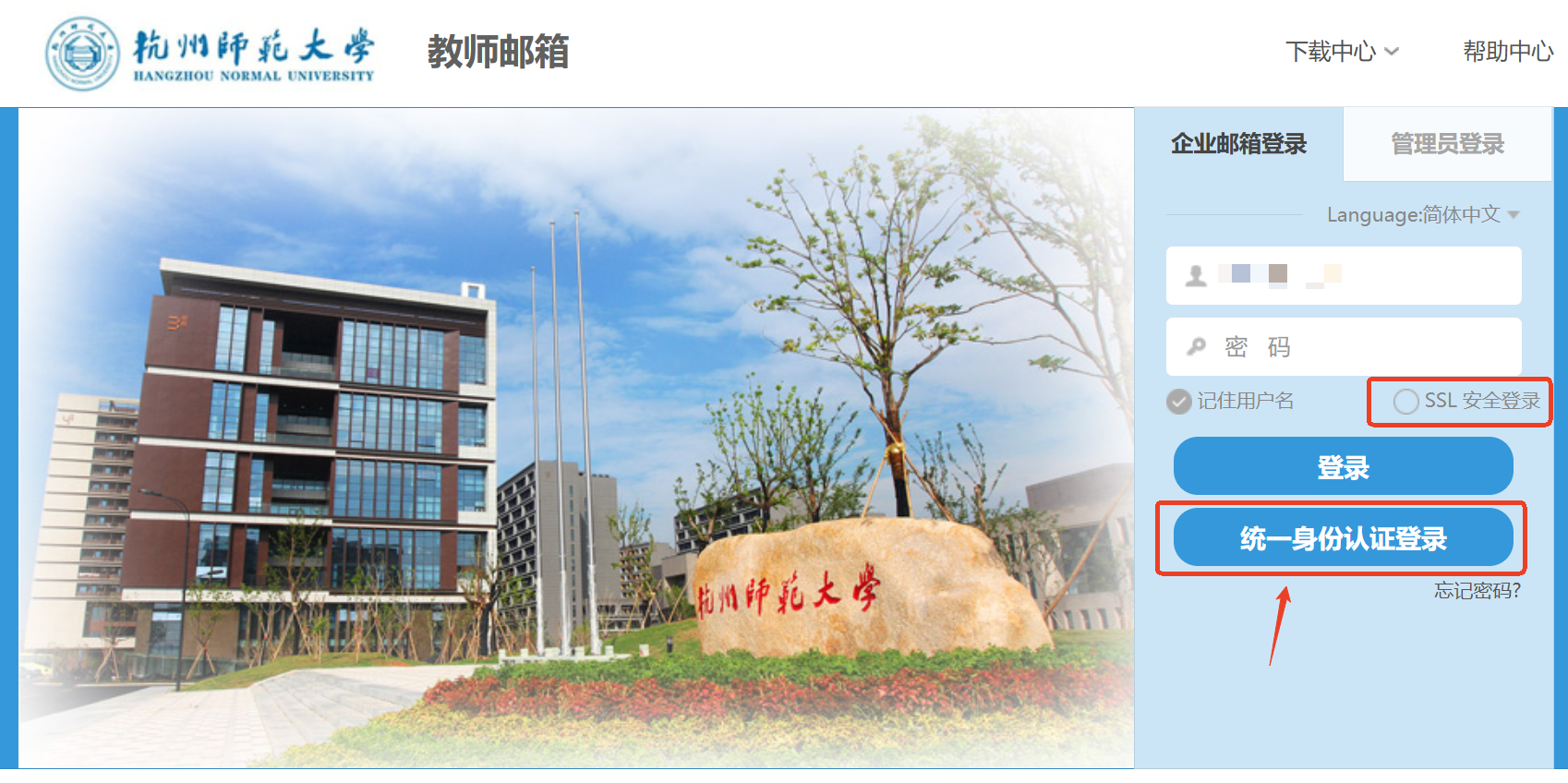 教职工旧邮箱系统登录地址:http://mail.oldmail.hznu.edu.cn/,登录时取消勾选“SSL安全登录”,点击【统一身份认证登录】即可查看旧邮箱信息。