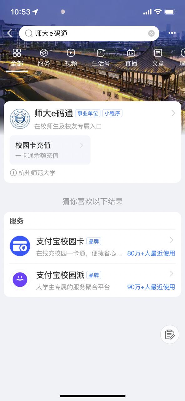 无卡支付已经成为移动支付的主流趋势。为进一步扩展校园卡功能,优化用户体验,经与支付宝、正元智慧等公司合作,我校作为浙江省高校首推电子校园卡。即日起,支付宝客户端推出的“杭州师范大学电子校园卡”应用进入试运行阶段。现将试运行阶段的有关事项通知如下: